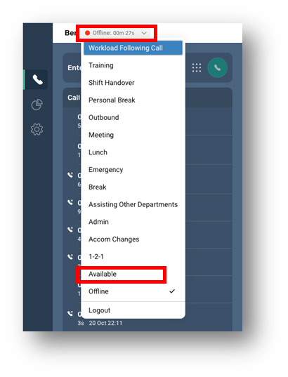 - You will notice that you are set to Offline by default and will only start receiving contacts when you set your status to Available.